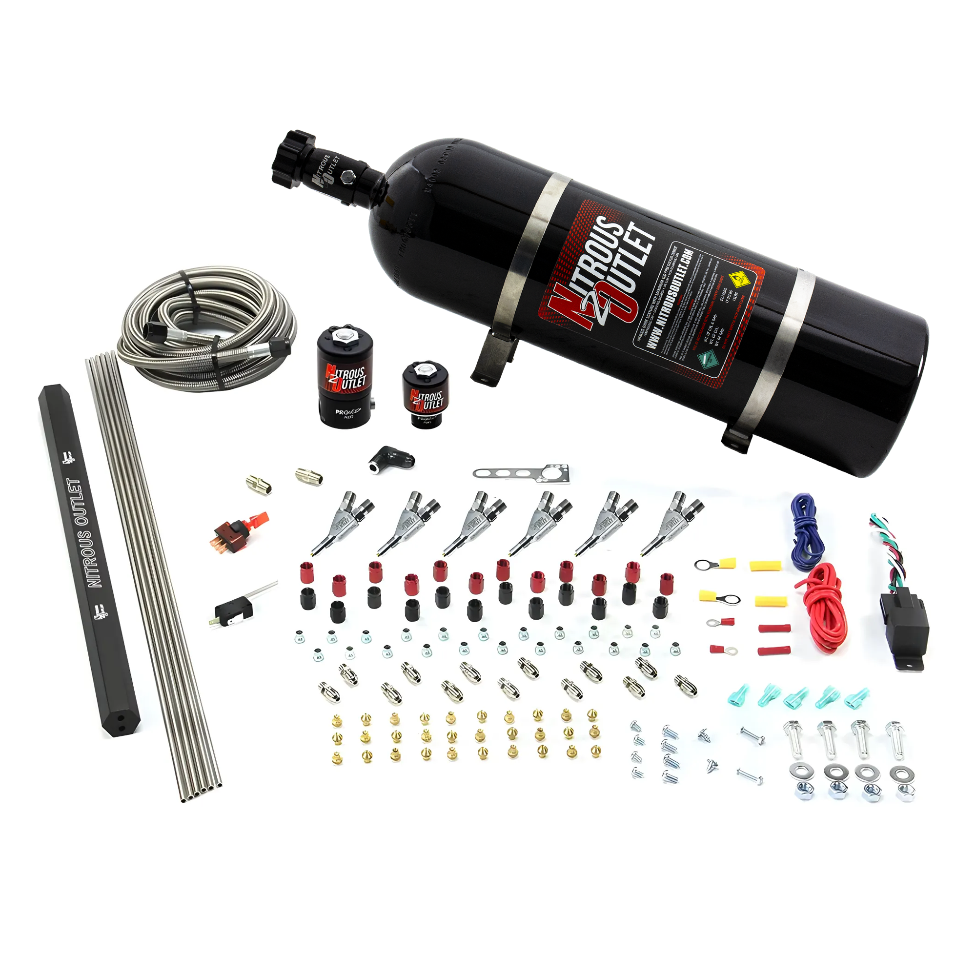 6 Cylinder 2 Solenoid Direct Port System With Single Injection Rail and Straight Blow Through Nozzles, Low Fuel Pressure E85 (15lb Bottle)