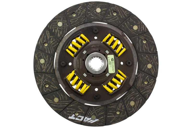 3001101 is a performance street disc and the most popular disc purchased. It features premium organic materials with high copper content for better heat transfer. Performance street discs allow for quicker shifting and smooth engagement. These discs feature a reduced marcel for faster shift action to complement ACT pressure plates. ACT spring-centered assemblies use bushings and cone springs similar to factory clutch discs. This creates frictional dampening, which improves clutch life and reduces noise. Quiet operation with increased strength and reliability.