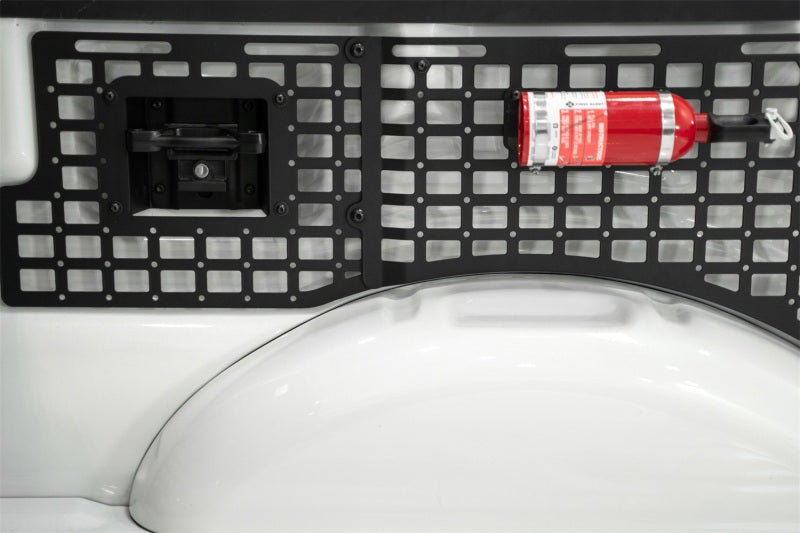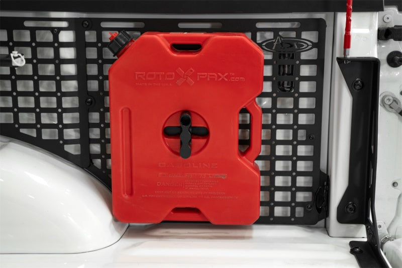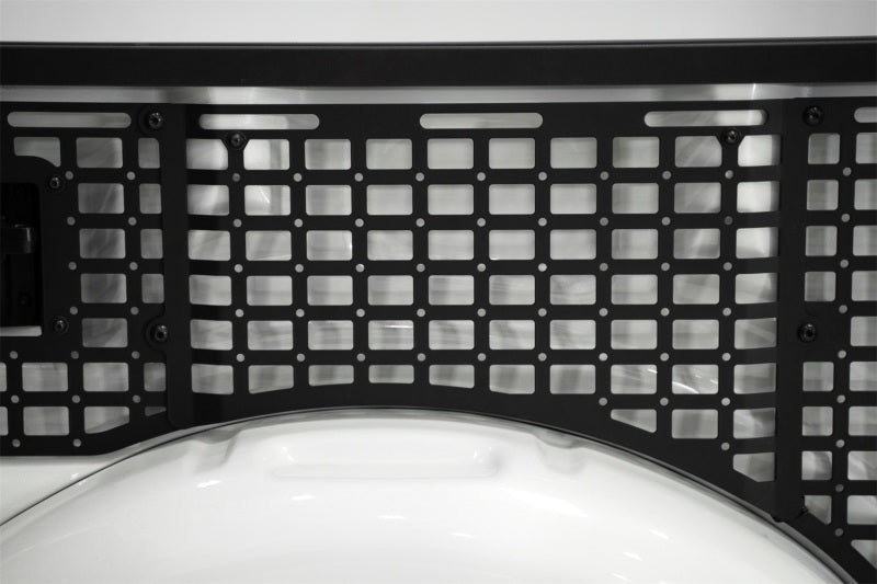 Our Bed Side Molle Panels optimize the cargo storage capabilities of your truck bed. Engineered for off-road durability and keeping your gear secure, these storage panels are compatible with various attachment systems. You can secure your gear to these panels with molle mounts, straps, bolts, or tie-down straps. Choose from several configurations for the driver side, passenger side, or both sides to maximize your vertical storage - and leave the bed floor clear for larger cargo. Our panels are unrivaled in their fitment, as the very closely follow the contours of the truck bed. Constructed from American steel and finished in a durable 2-stage hammer black powder coat, these molle panels add secure storage for essentials like shovels, hi-lift jacks, fluid tanks, recovery gear, and more. The panels mount to the bed at several points, ensuring rigidity on rough terrain. Even so, they are easily removable when needed. As always, these are fully bolt-on and Made in America. This modular system allows for you to run 4 configurations on driver side, passenger side, or both: Front Bed Panel Only / Rear Bed Panel Only / Front & Rear Bed Panels Only / Front, Center, & Rear Bed Panels for Full Bed Length Coverage * Please Note: The front panels can be installed to either the driver or passenger sides. All other panels are unique to each side of the truck, and will only install to its dedicated side. ** Please Note: Center panel cannot be installed on its own. It requires BOTH the front and rear panels for installation. ** Fitment Note: These are compatible with the 5.5' Short Bed Only.