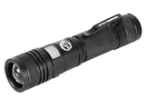 Put some powerful light on your subject with aFe Power's super bright CREE LED 950 lumen flashlight. This compact flashlight features a water and shock proof, anti-slip textured aluminum body and adjustable permeable optical glass to increase brightness. Perfect for wrenching in the garage and outdoor use, the aFe Power LED flashlight is rechargeable through a built-in Micro USB port and features 5 light modes: high, middle, low, strobe and SOS. Fully zoomable from wide to narrow beam and can run up to 2 hours per charge on high mode.