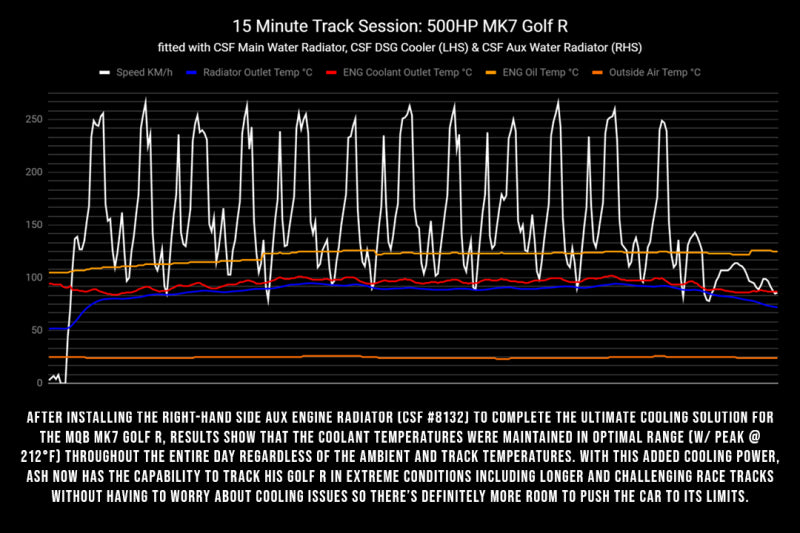CSF has over 5 decades of experience manufacturing radiators. So when it comes to keeping your engine cool and your Audi/VW running at its best, a CSF High-Performance All-Aluminum Radiator is the obvious choice. Designed to perform on the street or at the track, a performance radiator is a must-have for both high horsepower builds as well as race vehicles which need added cooling performance in motorsports environments. The Triple-Pass Flow Structure allows the coolant to flow across the core of the radiator three times before exiting for lowest outlet temperatures possible. This radiator features a 2-Row core with CSF's exclusive B-Tube Technology: Unlike a regular oval shape "O" type radiator tube, CSF uses a specially engineered tube in the shape of a "B". These "B-tubes" are carefully formed and then brazed over the seam to seal. CSF is able to use thinner and lighter aluminum material (with better cooling efficiency) because this design is actually stronger than normal "O" shape tubes that are welded. The design (inlet in the middle of the tube that is seam brazed) increases the heat transfer surface area of the tubes by approximately 15% over regular tubes - producing the efficiency of two smaller tubes vs. one large tube within the same space criteria. With "B-tubes" you are able to get "dual liquid laminar flow". CSF also uses ultra efficient multi louvered fins that are carefully and precisely aligned to maximize airflow through each radiator core. Fin specifications are carefully measured and calculated for each application, and tested for maximum heat rejection efficiency in our wind-tunnel lab.