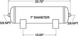 This Firestone air tank provides a source of compressed air for an air spring system. Tank has 3-gallon capacity and (2) 3/8 in. NPT ports. Tank is enamel coated to resist corrosion, tested to be SAE J10 compliant and capable of 150 psi. Features: Provides compressed air source for an air helper spring system Allows for faster inflation of air springs Holds 3 gallons of compressed air Includes (2) 3/8 in. NPT ports Steel tank with brass fittings Resists corrosion with internal and external enamel coating Is SAE J10 compliant Operates at up to 150 psi of maximum pressure Specs: Tank dimensions: 20.75 in. long x 7 in. diameter Tank capacity: 3 gallons Inflation ports: 3/8 in. NPT PSI: Maximum of 150 2-Year limited warranty