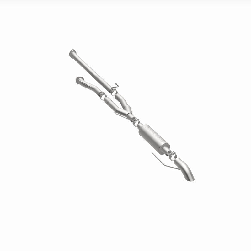 The MagnaFlow 2009-2013 Toyota Tundra Off-Road Pro Series Cat-Back Performance Exhaust System 17111 brings additional off-roading prowess and our deep signature exhaust note to your 5.7L 2009-2013 Toyota Tundra with a weight-optimized, dyno-tested, corrosion resistant and durable stainless steel design engineered to closely hug the undercarriage for improved ground clearance. Exhaust kit 17111 is engineered to produce Very Aggressive exterior and Aggressive interior sound levels. Extensive 3D scanning was used during the development of this Toyota Tundra exhaust system to create a direct-fit design, enabling a do-it-yourself installation process. 17111's emissions-legal cat-back design replaces all your truck's exhaust components from the catalytic converter on back with its 2.5in. diameter mandrel bent main piping that passes through 1 Straight-Through mufflers before ending in a turndown before rear axle exit with 3in. Satin Clamp-On Single Wall Turndown Cut Edge tips. Exhaust system 17111 is produced using advanced CNC precision robotic manufacturing techniques and backed by MagnaFlow's limited lifetime warranty.