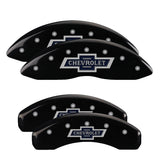 MGP 4 Caliper Covers Engraved Front & Rear Chevrolet 100 Anniversary Logo Black Finish Silver Charac