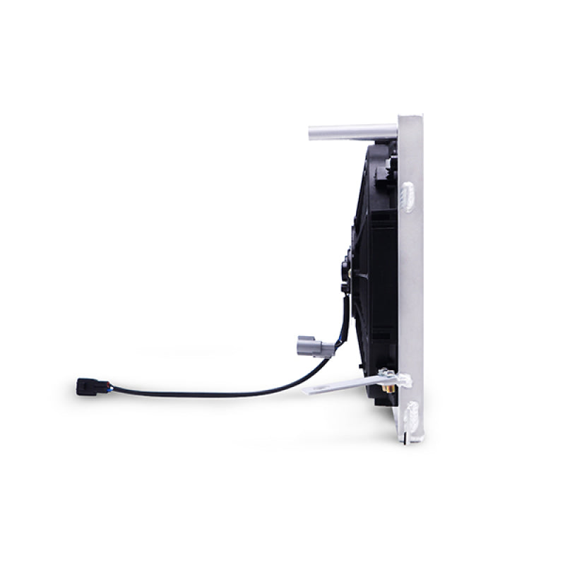 Free up some space in your BRZ / FR-S / or GT86's small engine bay with the Mishimoto Plug-N-Play Aluminum Fan Shroud Kit! This kit bolts directly to your stock or Mishimoto Subaru BRZ /Scion FR-S Performance Aluminum Radiator and works perfectly with the stock coolant overflow tank. The brushed aluminum fan shroud is preassembled in the correct location with two 12in high-flow fans, and prewired with stock-style connectors. This plug-n-play kit requires zero splicing, soldering, or crimping and bolts into place just like the stock fan shroud setup. Each fan provides over 1150 CFM of airflow, which effectively keeps hot engine temperatures at bay. Thanks to a slim profile, this fan shroud has a maximum depth of just 3.5in that saves significantly more engine bay space for a larger header, turbo kit, or supercharger. This kit includes all hardware for installation and the Mishimoto Lifetime Warranty.